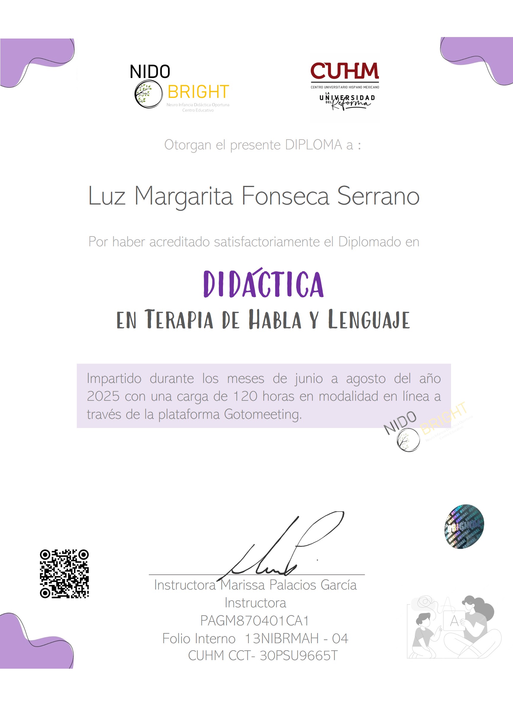 12.- Fonseca Serrano Luz Margarita - Diploma Terapia de Habla y Lenguaje (jpg)Descargar