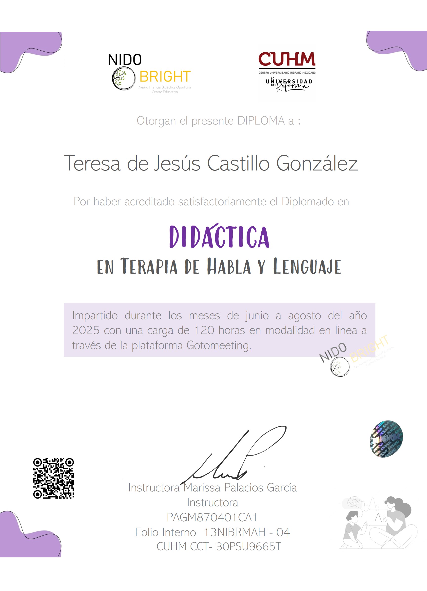 15.- Castillo González Teresa de Jesús - Diploma Terapia de Habla y Lenguaje (jpg)Descargar