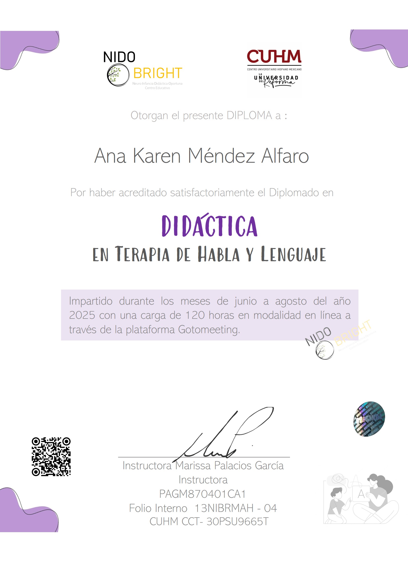6.- Méndez Alfaro Ana Karen - Diploma Terapia de Habla y Lenguaje (jpg)Descargar