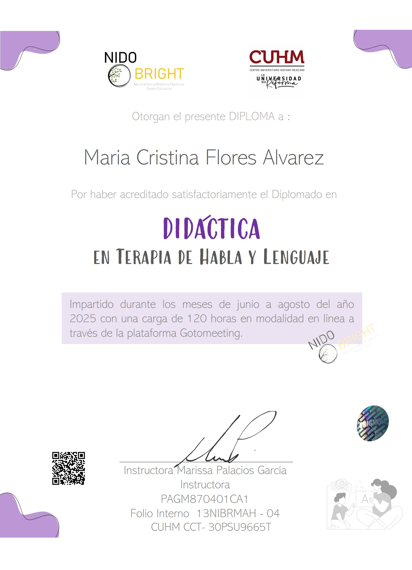 6.- Flores Alvarez Maria Cristina - Diploma Terapia de Habla y Lenguaje (jpg)Descargar