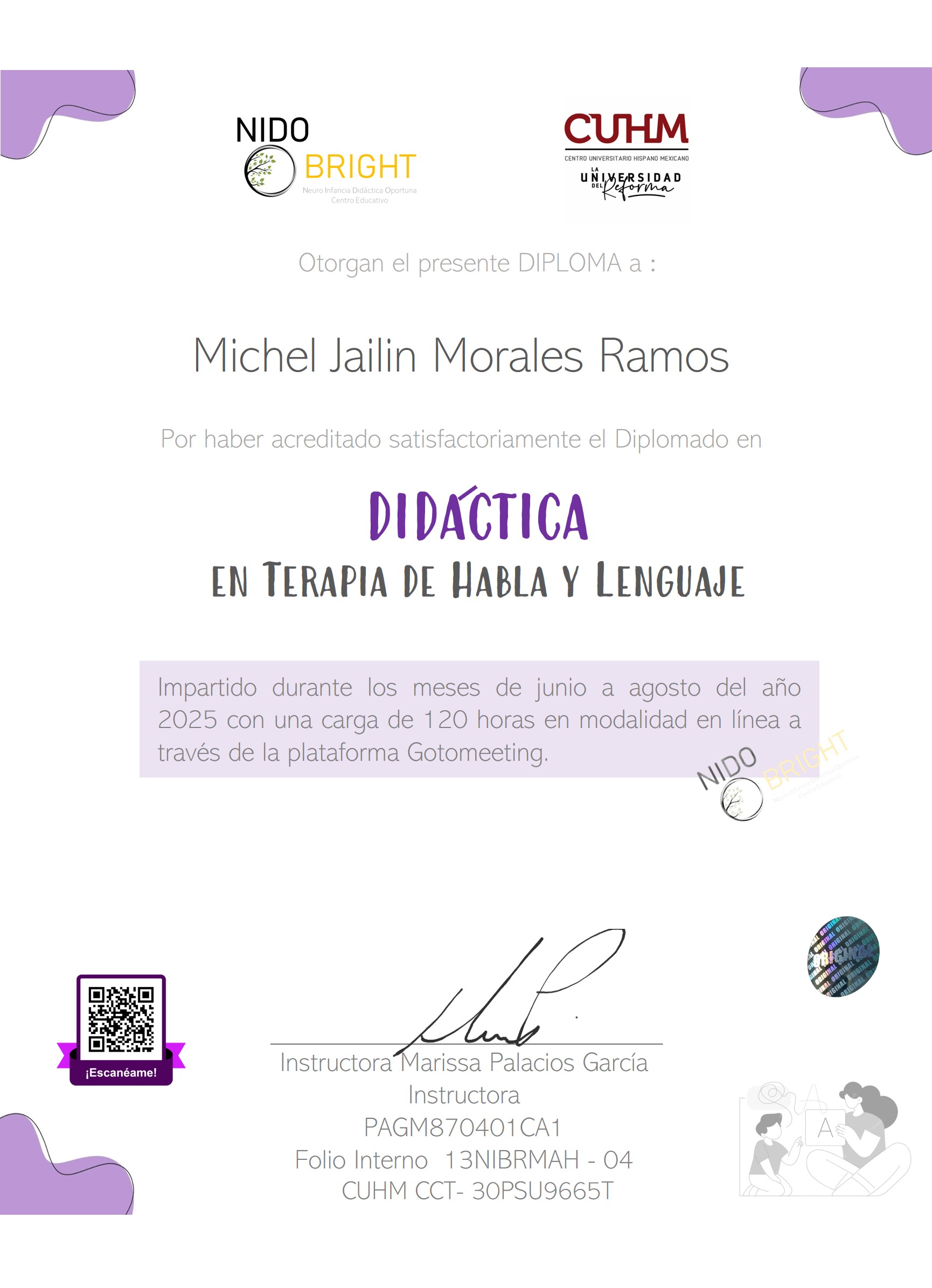 2.- Morales Ramos Michel Jailin - Diploma Terapia de Habla y Lenguaje (jpg)Descargar