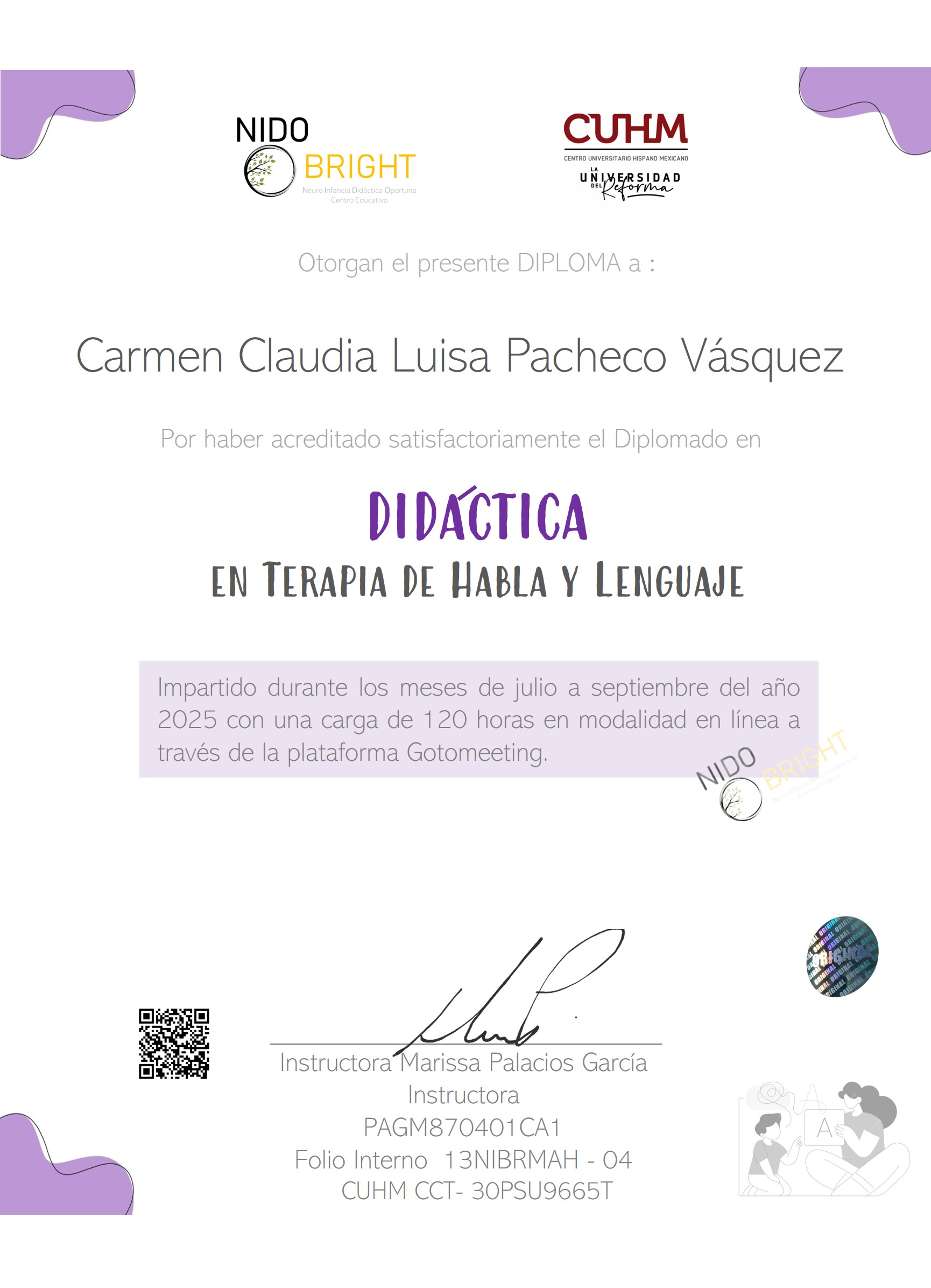 9.- Pacheco Vásquez Carmen Claudia Luisa - Diploma Terapia de Habla y Lenguaje (jpg)Descargar