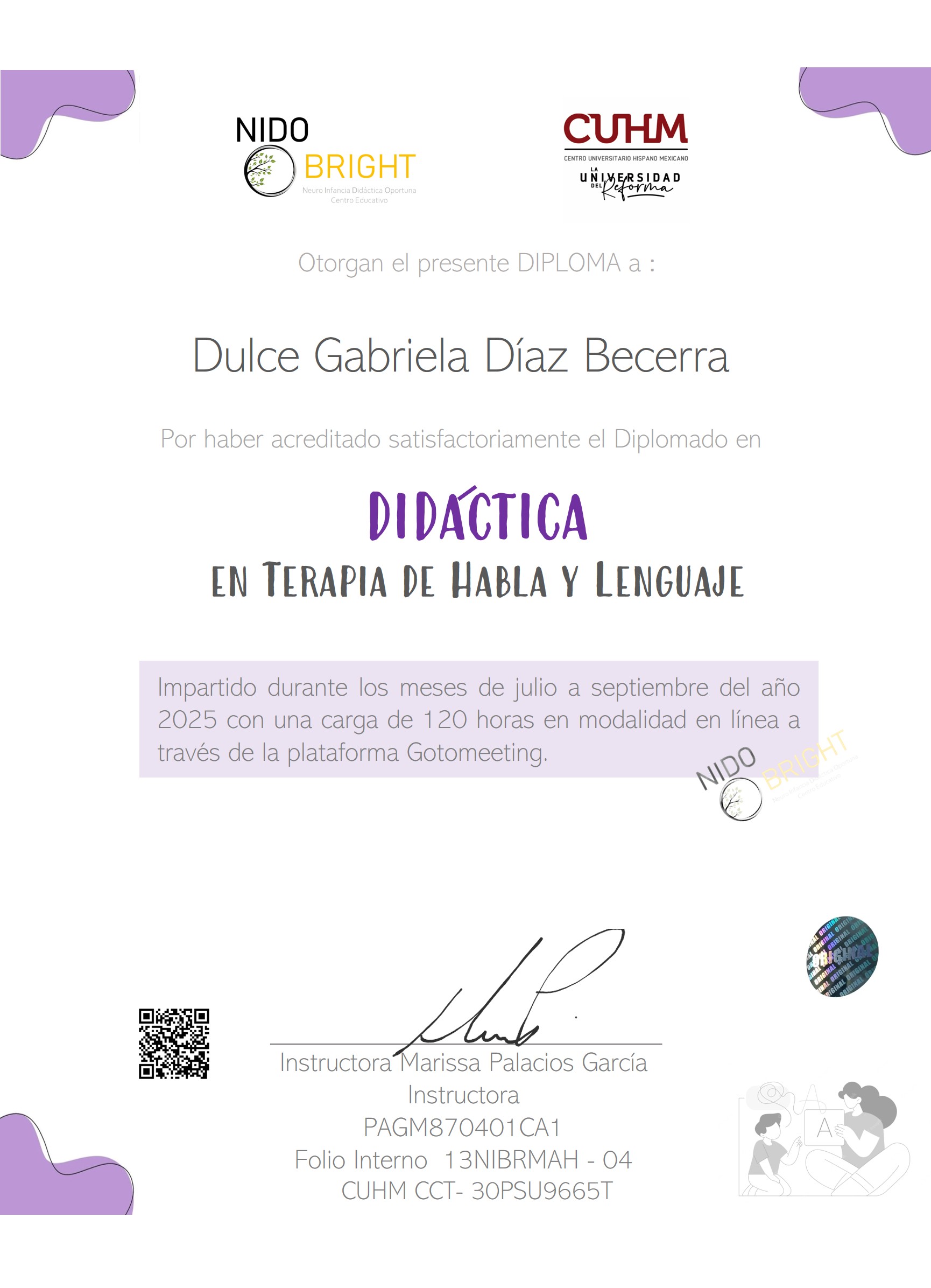 8.- Díaz Becerra Dulce Gabriela - Diploma Terapia de Habla y Lenguaje (jpg)Descargar